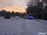 Schnee und Eis sorgten neben dem Feuer durch einfrieren und glatte Stelle zusätzlich für Gefahren an der Einsatzstelle.