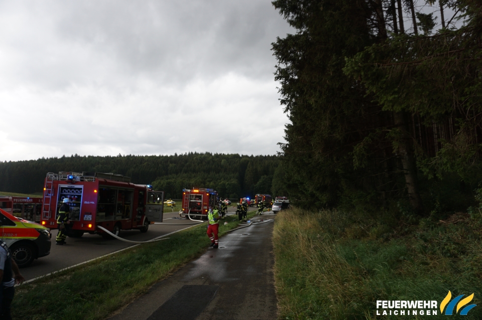Anfahrt Kreis Reutlingen waren ebenfalls 2 PKW beteiligt wovon einer in Brand geraten war.