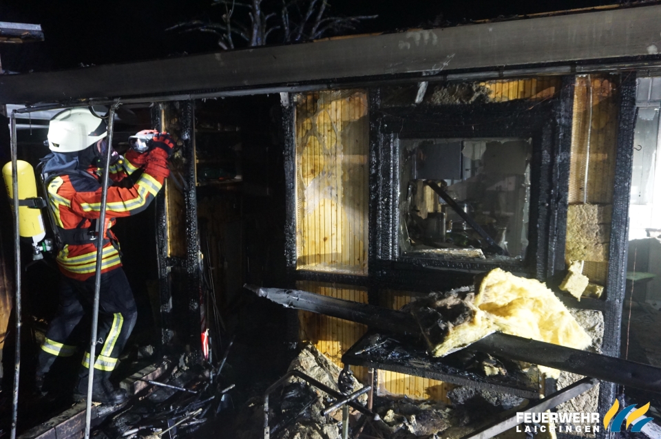 Nach einer Kontrolle mit der Wärmebildkamera und Nachlöscharbeiten wurde die Einsatzstelle an die Polizei übergeben.