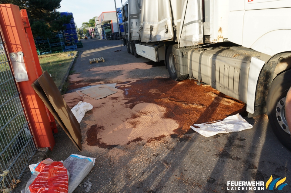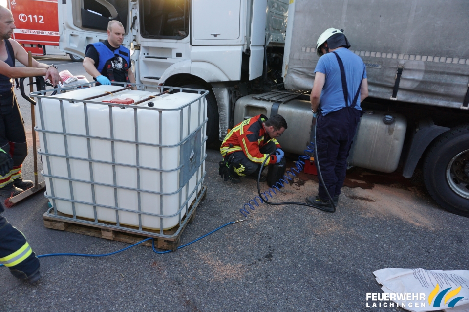 Durch ein Wendemanöver wurde der LKW Tank aufgerissen.