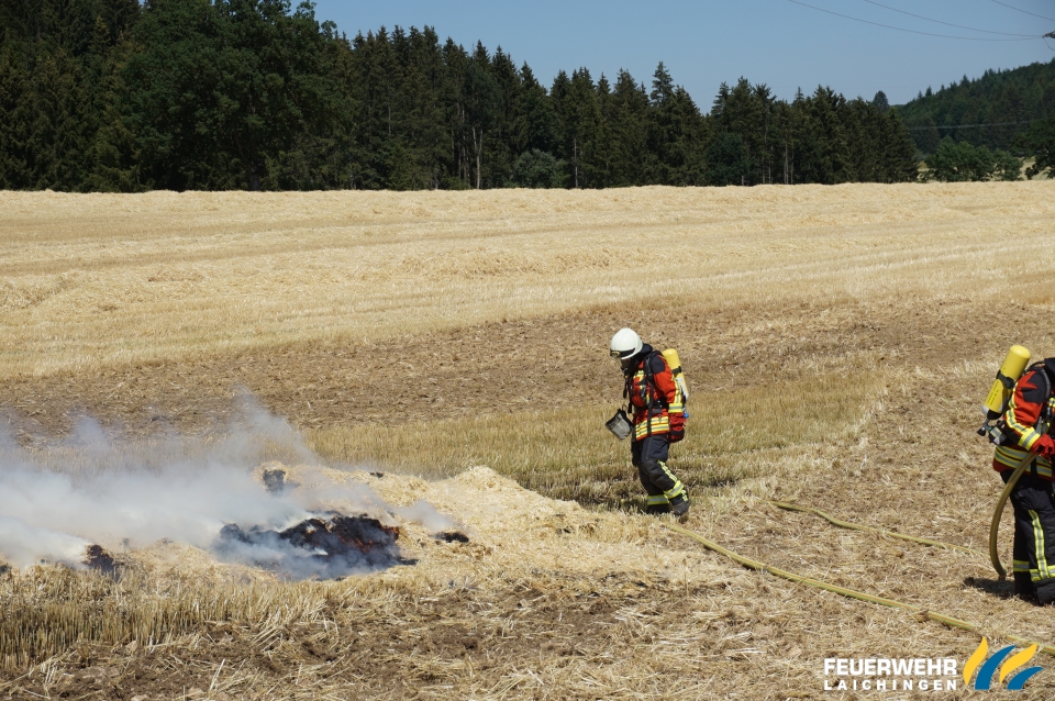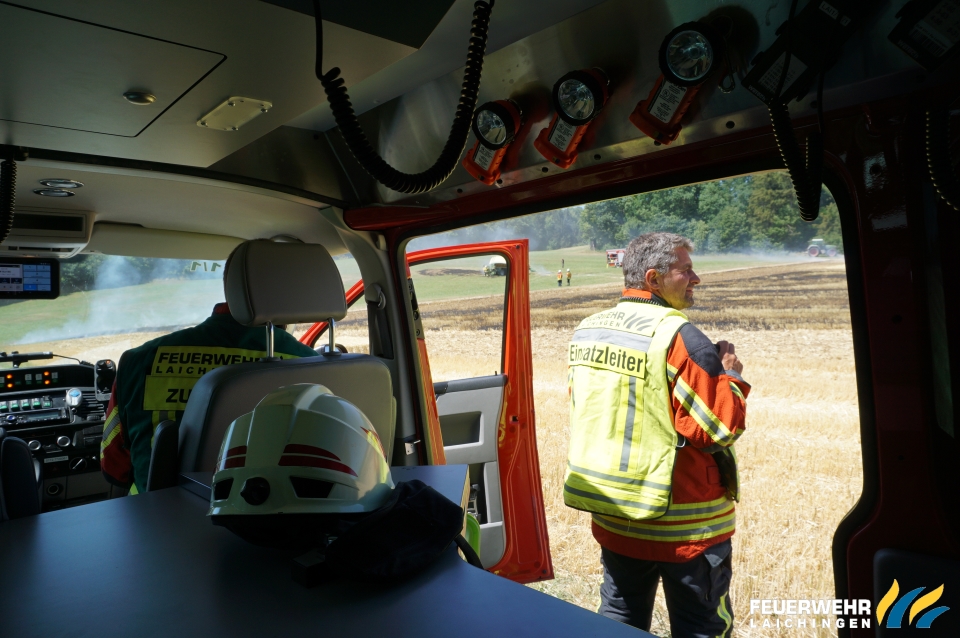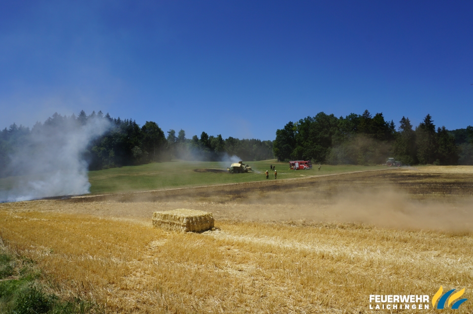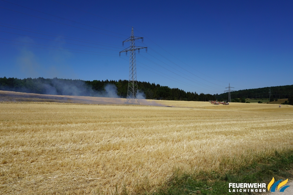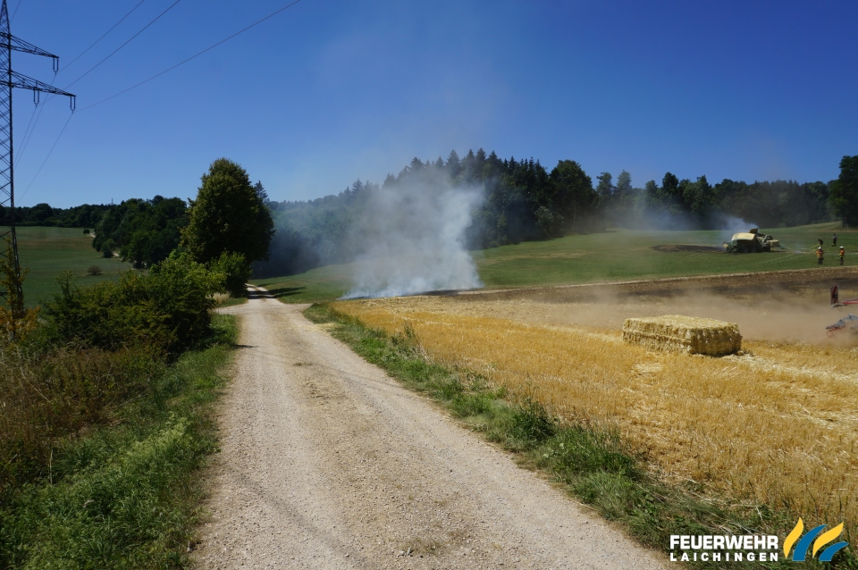 Beim Eintreffen brannte eine Ballenpresse sowie Feldstücke auf einer Länge von ca. 200 Metern.