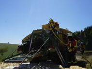 Nachdem die Brände gelöscht waren wurde das Feld durch den Landwirt umgepflügt und die Presse auf befestigten Untergrund geschleppt.