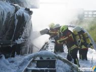 Pendelverkehr zur Wasserversorgung an der Einsatzstelle.