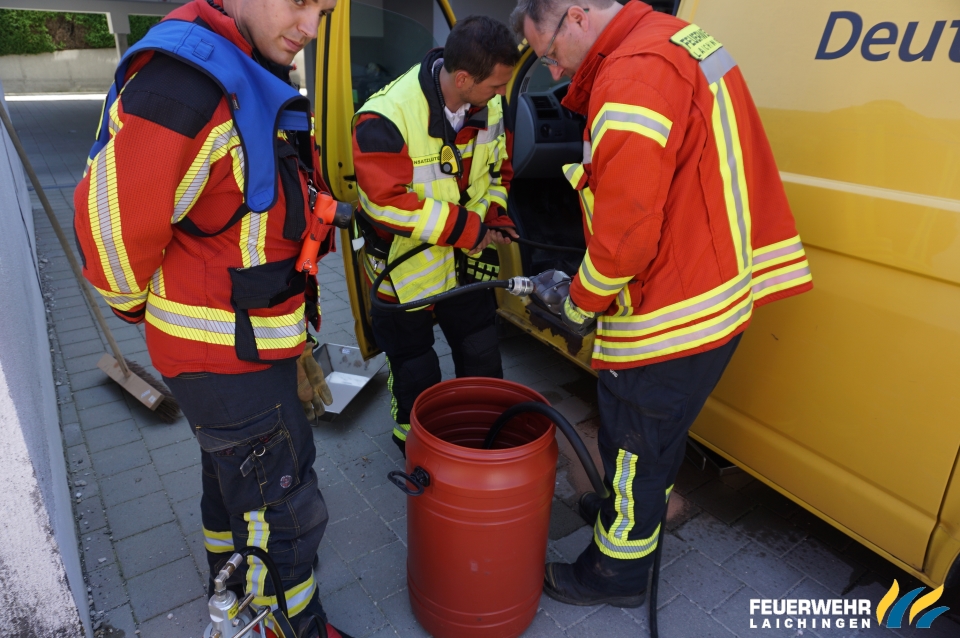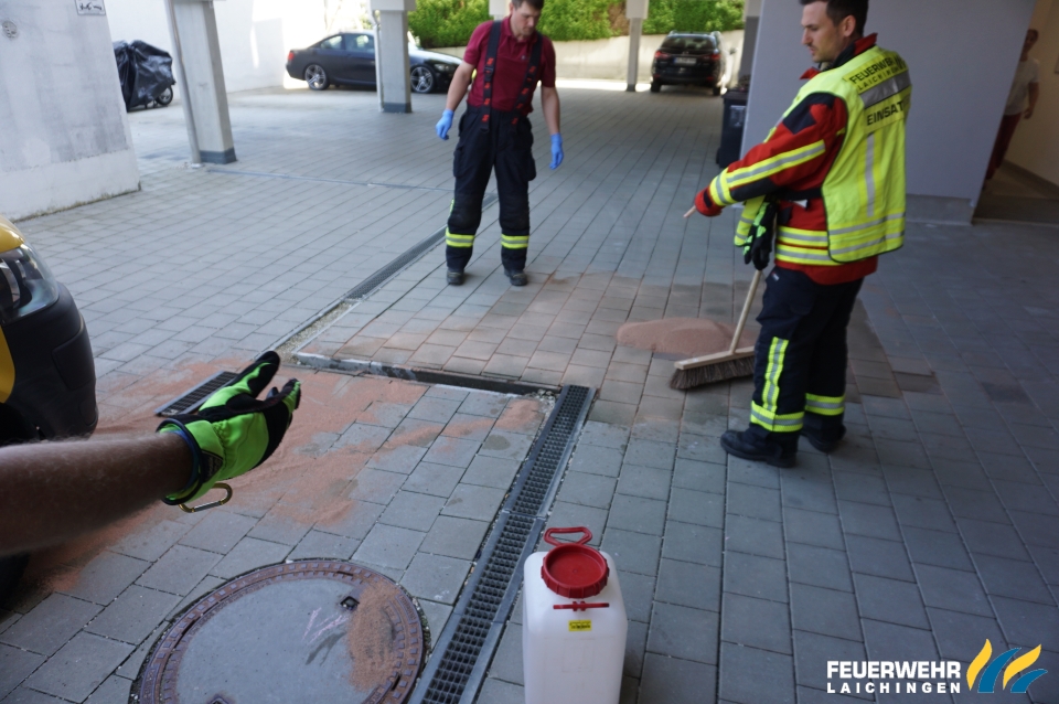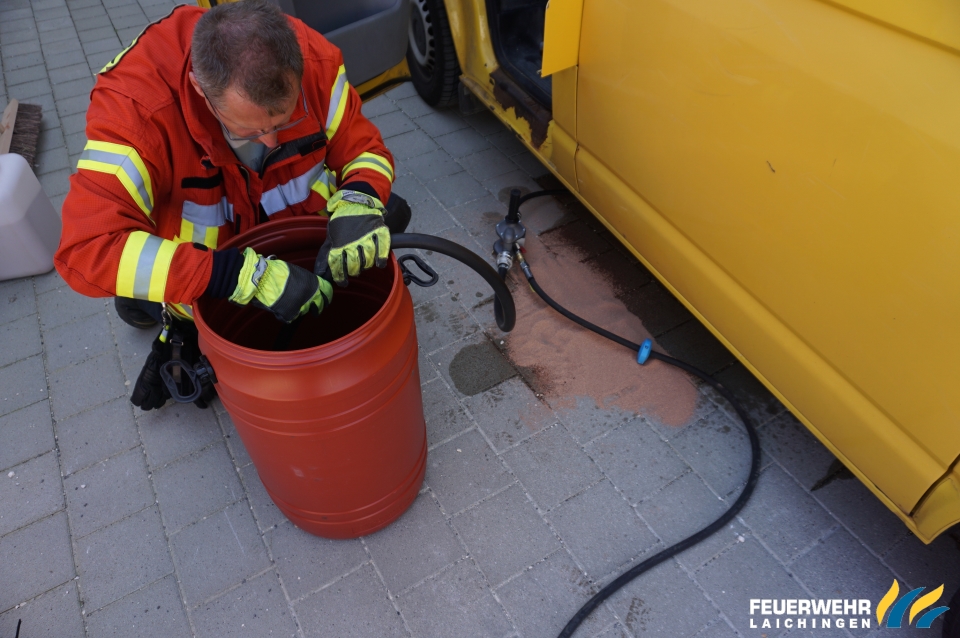 Durch einen beschädigten Tank trat Kraftstoff aus einem PKW aus.