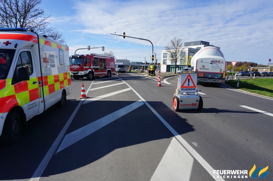 Die Feuerwehr sicherte die Einsatzstelle ab und nahm auslaufende Betriebsstoffe auf.
