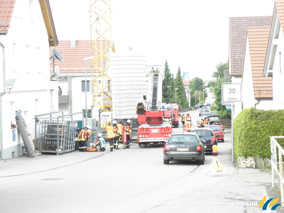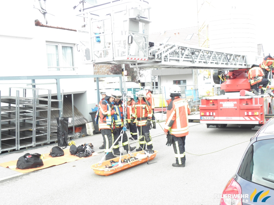 Übung Bauunfall Einfache Rettung aus Höhen und Tiefen