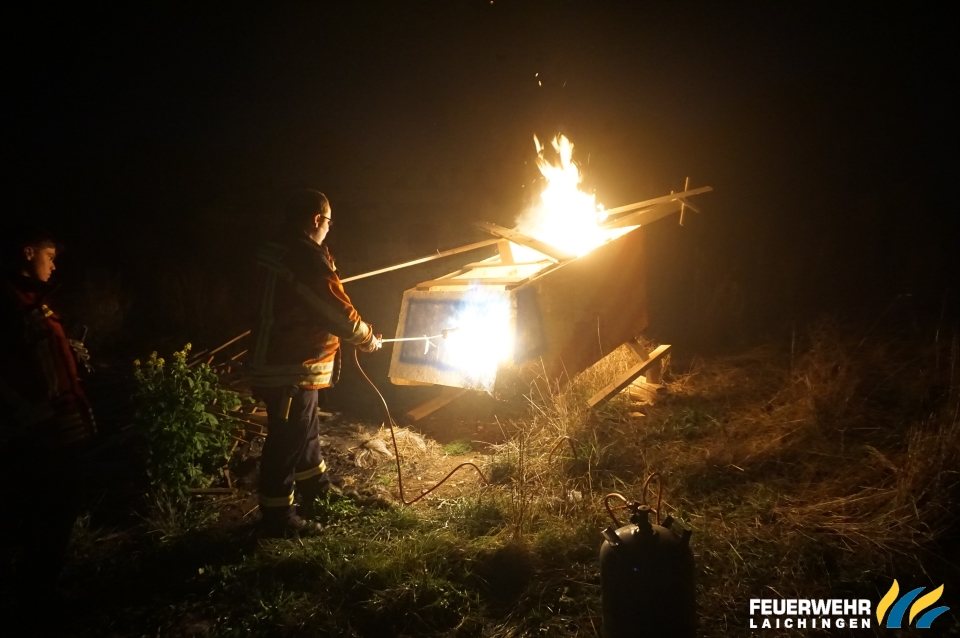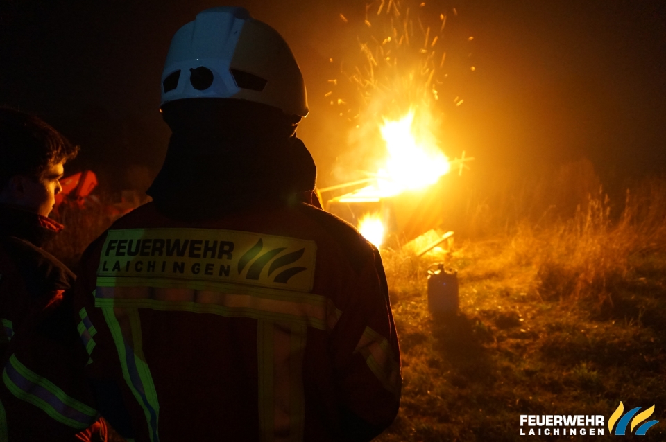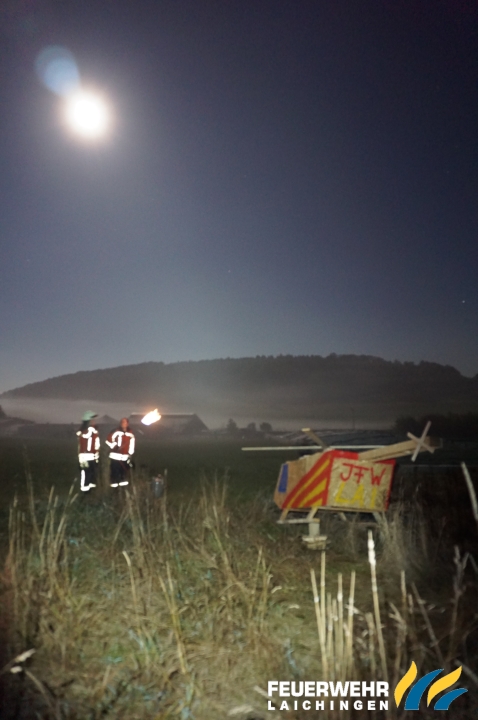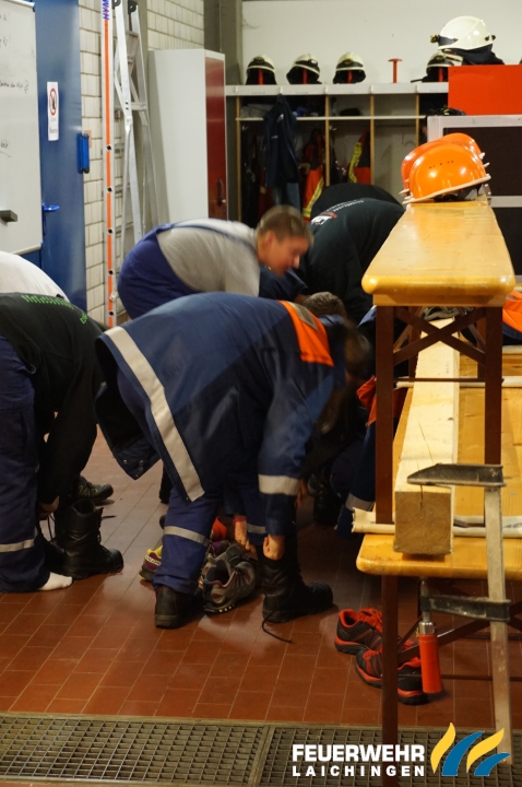 Laut tönt der Alarmgong durch das Gerätehaus in Laichingen. Erschrocken lassen die Erwachsenen die Kaffeetassen sinken. Die Kinder und Jugendlichen sind da schon auf dem Sprung. Sie rennen zu den Spinden, setzen ihre Helme auf, schließen ihre Jacken und stülpen die Handschuhe über. Alles Vorsichtsmaßnahmen, denn der Einsatz der bevorsteht, ist keine Kleinigkeit. Ein Hubschrauber ist Nahe einem Ausliederhof abgestürzt. Tatsächlich qualmt es dort, die Flammen schlagen aus dem Hubschrauber. Schnell wird die Wasserversorgung aufgebaut, es rollen Schläuche. Danach wird akribisch gegen die Flammen und den Qualm vorgegangen. Das Kinder und Jugendliche zu einem Einsatz ausrücken ist bei normalen Einsätzen unmöglich. Doch am letzten Samstag war alles ein bisschen anders. Der Einsatz ist nur eine Übung. Der brennende Hubschrauber ein Modell aus Holz welches in Brand gesetzt wurde, damit die Nachwuchskräfte unter realistischen Bedingungen lernen können, wie ein Brand schnell und sicher unter Kontrolle gebracht und gelöscht werden kann. Am Samstagvormittag um 10 Uhr zogen alle ins Gerätehaus ein. 24 Stunden verbrachten 21 Kinder und Jugendliche im Alter zwischen 10 und 17 Jahren im Gerätehaus in Laichingen. Ausbildungseinheiten und Dienstsport standen auf dem Programm. Immer wieder wird aber ein Alarm ausgelöst. Der Notruf geht an der eigens eingerichteten Leitstelle bei den Jugendlichen ein, sie beruhigen den Anrufer, Fragen nach allen notwendigen Informationen und lösen dann den Alarm aus. Die Szenarien die sie am Einsatzort antreffen sind absolut unterschiedlich. Mal muss ein Keller ausgepumpt werden, dann eine unter einem Baum eingeklemmte Person befreit werden. Es brennt ein Traktor, entlaufene Reptilien sind einzufangen und eine Person ist aus einem verunfallten Auto zu befreien. Am spannendsten sind, neben den Bränden, die Einsätze mit unbekannten Substanzen. Es muss Gefahrgut aus einem Auto geborgen werden und ein Atomunfall beschäftigt die Jugendlichen. In den 24 Stunden sind insgesamt 13 Einsätze durch die beiden Dienstgruppen zu bewältigen. Die ganze Palette des Feuerwehralltags kennen lernen – darum ging es beim zehnten Berufsfeuerwehrtag der Jugendfeuerwehr Laichingen. Seit Juli haben die Jugendleiter die Einsätze geplant und vorbereitet. Nach 24 Stunden war klar, alle sind geschafft aber glücklich und schon jetzt gespannt, was sie am nächsten Berufsfeuerwehrtag alles erwartet. Wer Lust bekommen hat mitzumachen: Die Jugendfeuerwehr trifft sich alle 2 Wochen am Mittwoch zwischen 18.30 Uhr und 20.00 Uhr, das Programm ist auf der Homepage der Feuerwehr Laichingen zu finden. Kinder und Jugendliche aus Feldstetten, Machtolsheim und Suppingen werden um 18.00 Uhr am jeweiligen Gerätehaus abgeholt.